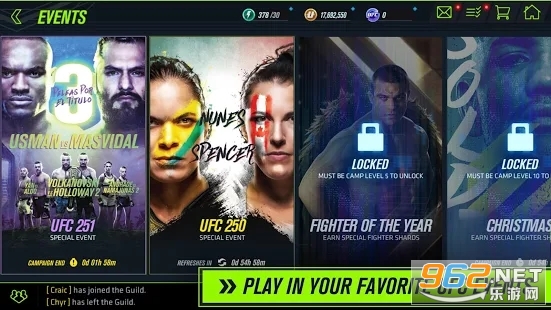 通过游戏中的直播比赛感受UFC最盛大的真实赛事。 体验战斗卡玩法,迎接即将到来的UFC赛事,赢得专属游戏奖励。 玩得越多,奖励越多! 登上排行榜首位,让您的报酬越涨越高。