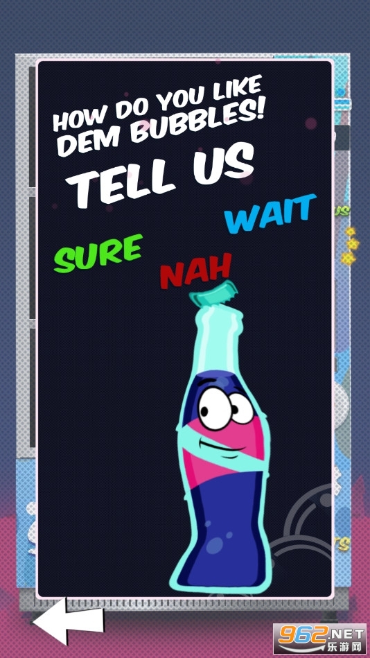 非常有趣的一款休闲游戏,玩家在游戏中可以用苏打水来摇泡泡瓶,多种不同包装的汽水供你来解锁,看看你摇出来的泡泡有多厉害吧!