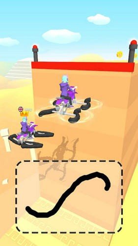 游戏玩法不是很难,轻松上手,制胜的绝招就是把腿画长一点,这样你的小汽车就能轻松跨越障碍了