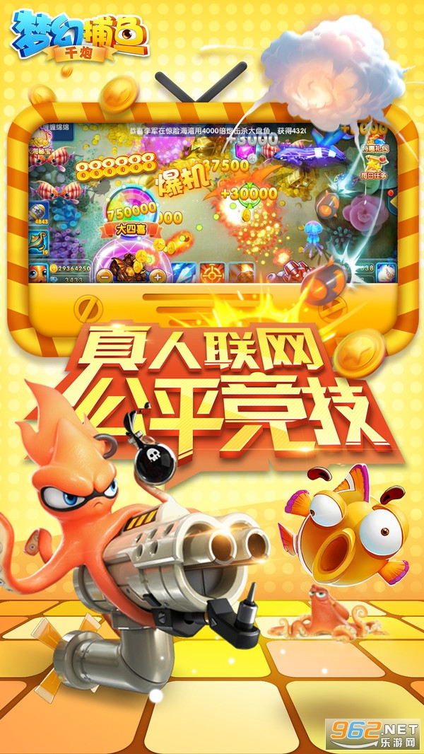 1.真人联机捕鱼,万人同时在线,同屏互动街机游戏!