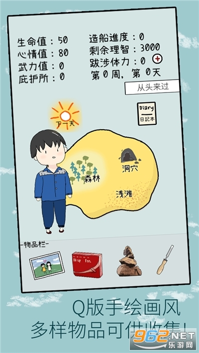《孤独的岛游戏》是一款生存冒险游戏,玩家需要利用各种道具和策略生存下来,多种道具可以收集,游戏画面不错,设计的道具等十分新颖有趣,喜欢的来下载吧。