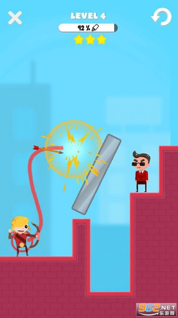 疯狂画箭游戏是一款益智烧脑风格的闯关冒险游戏,你的面前会有许多的敌人,你要想办法画出各种武器路径来将它们击杀。地形看似简单,但是很好的保护了敌人,所以你要仔细的观察,才能够画出更好的路径完成击杀。争取三星通过每一个关卡,这样你所获得的奖励也会增加,可以解锁更多不同的武器以及皮肤。