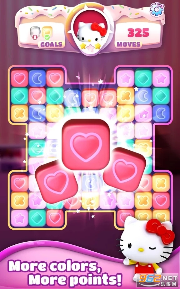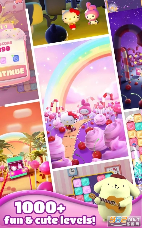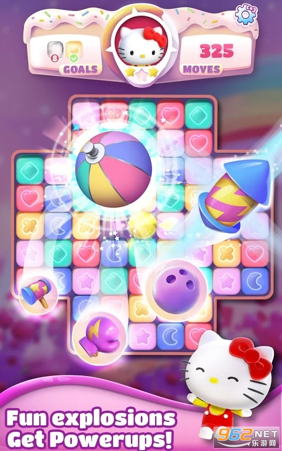 游戏拥有大量的关卡让大家来挑战, 经典的三消玩法,轻松就可以上手,各种酷炫的道具让你体验更加刺激的消除乐趣,玩法很魔性,也很有趣,对三消或者凯蒂猫感兴趣的话就来下载吧!
