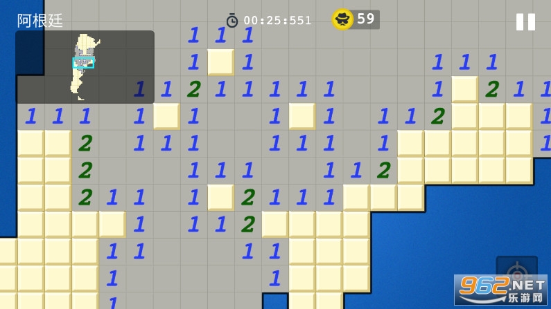 趣味的扫雷游戏,玩家可以挑战各种各样的地图,点击世界地图上的一个位置进行挑战,有着三种难度,你需要在尽可能短的时间内扫出全部的地雷,喜欢的朋友可以下载试试。