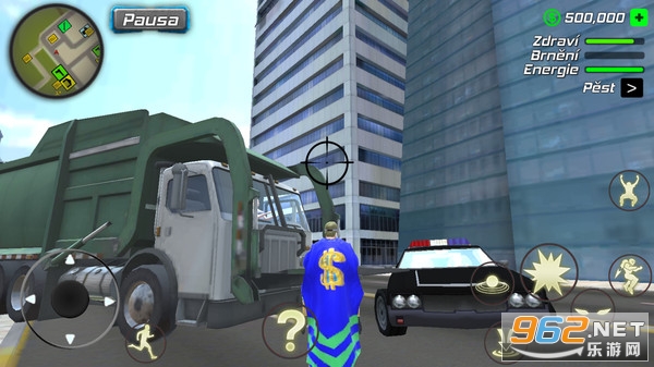 您是面临犯罪问题的城市英雄。要解决这些问题,您可以使用诸如手持激光束,也可以将物体从地面抬起并砸在地面上。你有一件事很特别-你会飞。你还有几家商店。您可以参观枪支商店,并购买各种武器。您可以去服装店买一件新衣服。您可以去滑板店买些新皮肤。您可以通过完成任务来获取奖励。