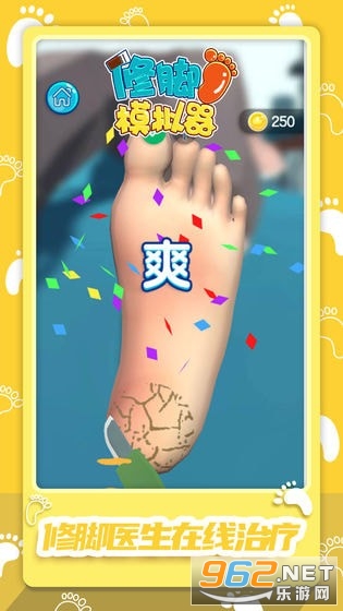 非常有趣的一款以修脚玩法为核心的休闲游戏,游戏看起来画面挺魔性的,我那件爱扮演一名修脚医生给病患的脚进行全面的清理吧!