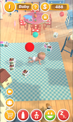 第三个版本的著名游戏我的宝贝。这一次,你的宝宝是在房间里充满了玩具,多维数据集和大量的有趣的东西。你可以做平常的事情与你的新生宝宝喜欢喂他,换尿布,命名你的宝宝,和他一起玩,尽量让你的宝宝走路,终于把孩子睡觉。