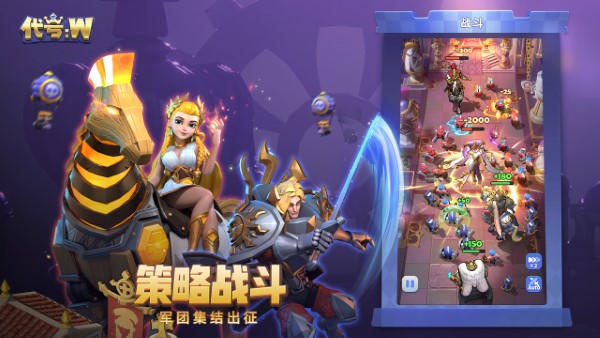 代号w是一个策略性的养成卡牌对战玩法,在这里,每个对战英雄基于国际象棋的王、后、车、马、象五大身份进行创作,选用了国际象棋+放置挂机作为游戏的玩法题材。同时,英雄率领的小兵也拥有丰富的策略搭配,彼此之间不仅存在羁绊效果,也拥有克制关系。小兵作为团战单位,通可以过简单的“二合一”合成进行养成,补充阵容的实力。