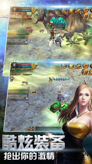 3、无兄弟不激情,无战友不热血,公会联盟,约战、合力击杀boss、迷宫探险、领土争夺,千人混战场景酷爽不停,更有竞技赛场,跨服pk,让实力彰显战力!
