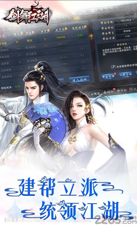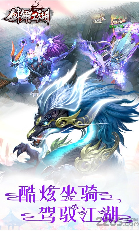 剑舞江湖游戏是一款大型的仙侠婚恋手游,玩家可以在这里结识侠侣,并肩作战,还有炫酷萌宠等你认领,副本boss神级掉装,精彩职业任你选择,快来2265手游网获取游戏下载链接体验吧!情侣修仙等你体验!
