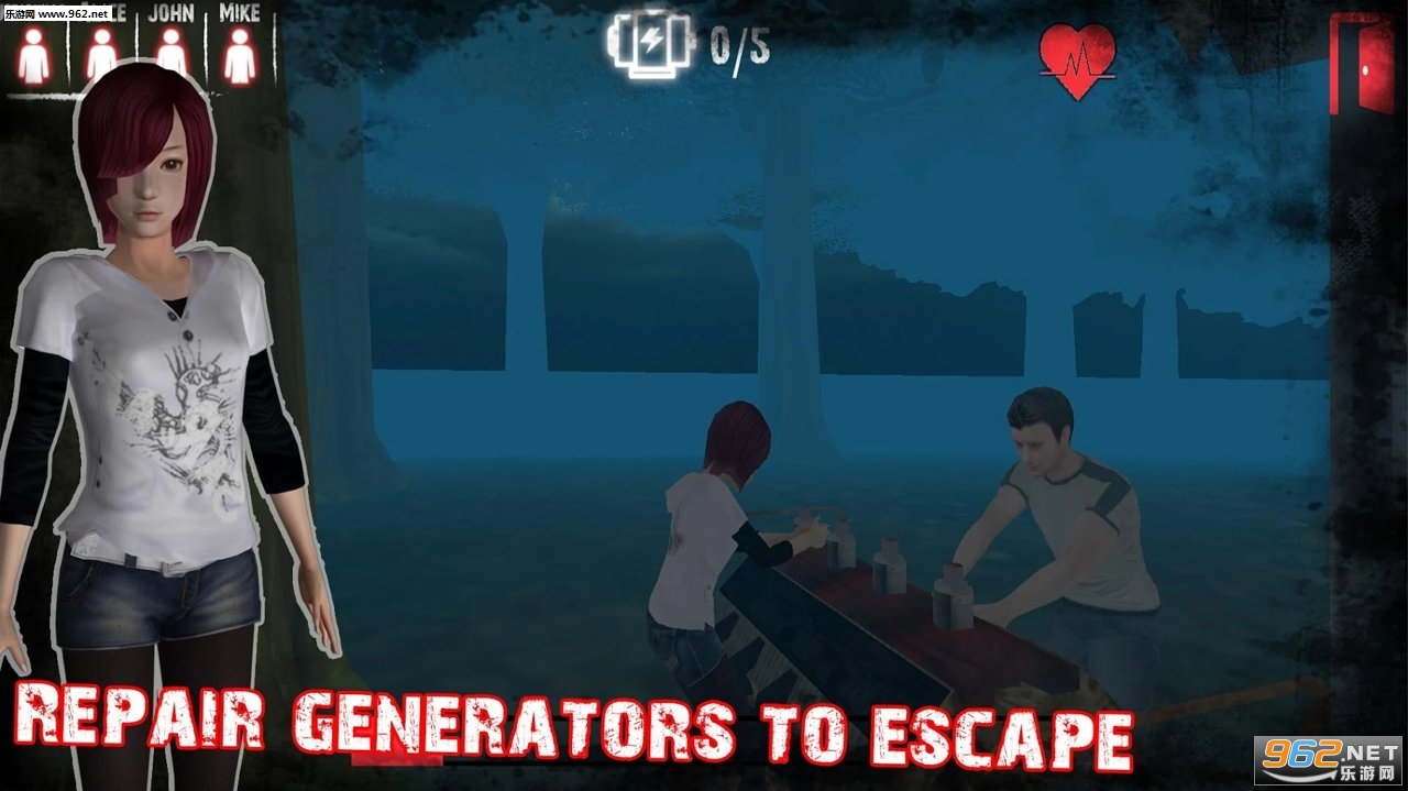 一个基于团队的恐怖生存游戏。在实时多人游戏模式中与您的朋友一起玩。在丛林中独自留下了一名杀手和4名幸存者。杀手将来捕杀所有的幸存者,幸存者必须通过修理发电机逃离丛林,最终被出口大门躲避。