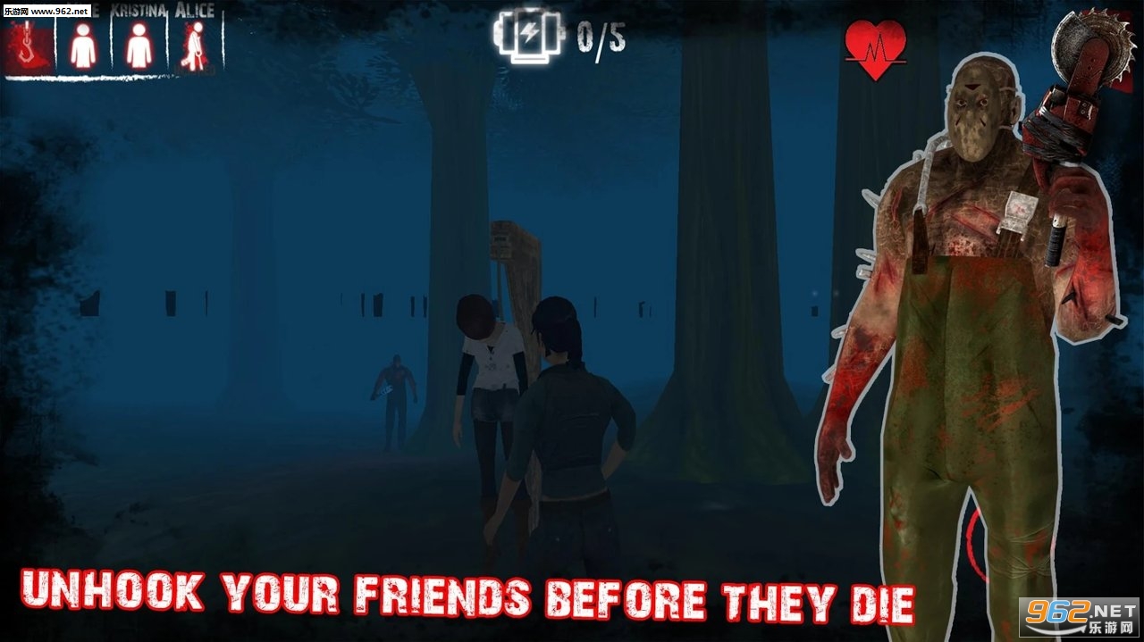 幸存者的任务是尽可能快地修理发电机但要注意杀手,杀手将把他们挂在钩子上追逐并杀死幸存者;