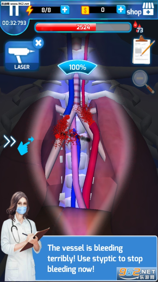 拿起手术刀,以实习生的身份开始自己的外科手术医生生涯。你需要掌握并使用多种手术器械,从简单的开创操作开始,逐渐接触并完成结石、异物、骨折、内脏出血、器官坏死、癌症等等各种各样複杂棘手的外科手术操作。在无人相助的电梯间、飞驰而过的救护车裡、战火纷飞的战地医院中,在这些紧急救援事件时,你更要握紧手中的手术刀,为各种各样遭受伤病困扰的病人们提供你最大限度的帮助。当病人痊癒出院时,你所拥有的将不仅仅是完成手术的奖励,还有病人们满怀感激的喝彩!