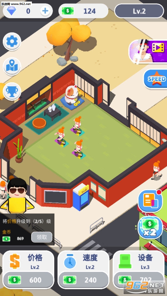 1、小清新的游戏画风,趣味的经营玩法,打出精彩的广告,让你的武馆拥有知名度;