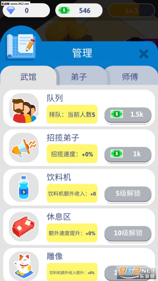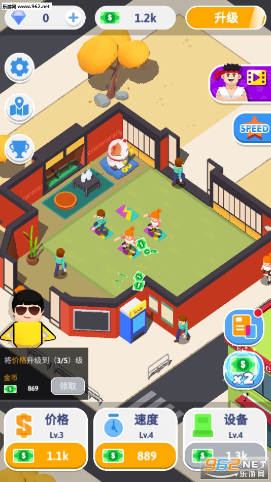 2、升级你的武馆,开设分布,不断的购买更多顶级的武功装备,让它四处都是;