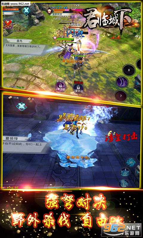 《君临城下》独创的自由连续技系统,配合特色神兵和多样阵法技能,可搭配组合出多种爽快连击,让您的战斗体验酣畅淋漓又变幻莫测。简单易上手的操作,无锁定技术PK,更有多阵营名将,绝世神甲,强大军团正在等待它们的主人,助您杀伐决断,横扫天下!任你选择。炫酷的游戏技能,真实的打击感,完美的游戏体验,体验畅快的战斗。战神培养,全面觉醒,打造属于自己的个性英雄。