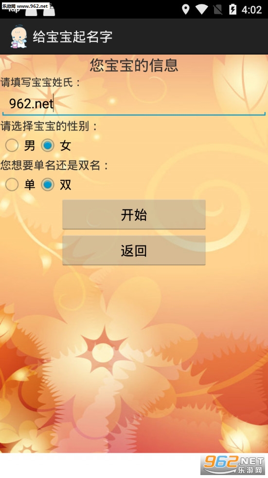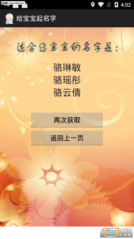 《给宝宝起名字免费》是一款完全免费的给宝宝取名用的软件,输入相关的信息就可以得到各种名字,如果觉得不好听就可以随时更换。命中五行需要积分开启,获取方式也挺简单的,有需求的话就快来下载吧!