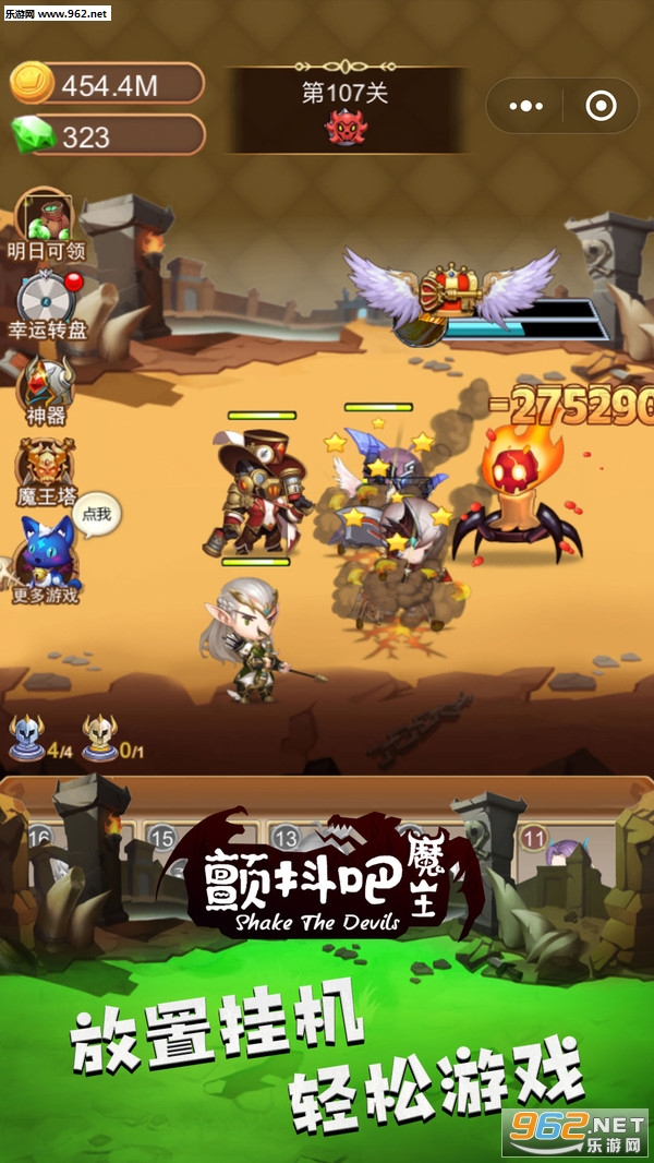 一款2D卡通魔幻画风的放置合成游戏,在游戏中可以通过招募英雄,自动加入战斗,拖动两个相同英雄可以合成一个更高级的英雄,不断战胜一个个魔王,收集打造各种神器。