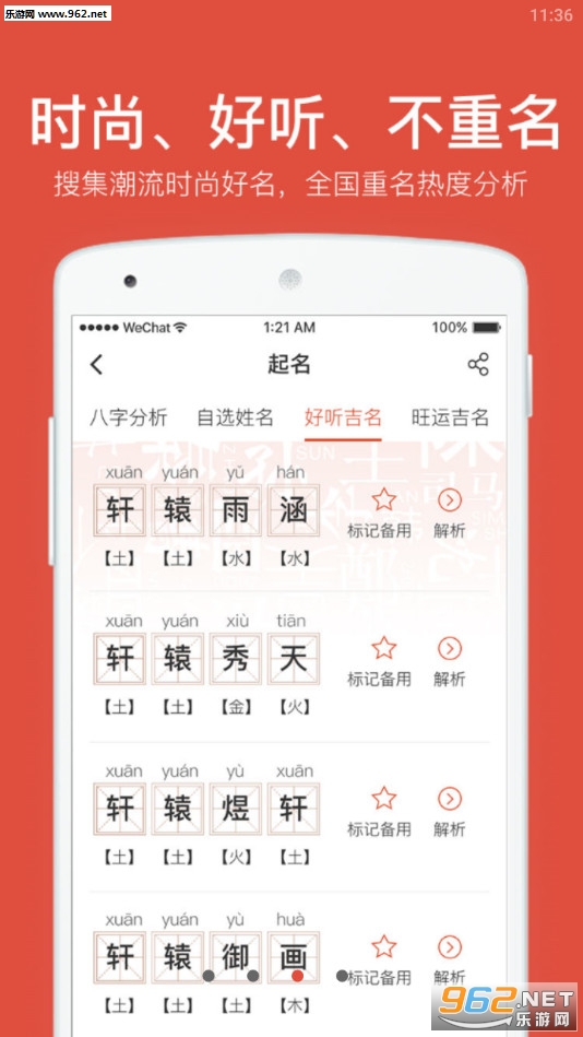 提供全面的起名,起名字,取名,取名字,改名,改名字,解名一站式服务的起名软件大全;app中包含生肖喜忌、字义音义、性格特点以及工作方向推荐,是宝宝起名、取名字首选起名软件,是明星准爸准妈强烈推荐的取名软件;是爸爸妈妈们起名大全;好听助运,好的人生,从好名开始