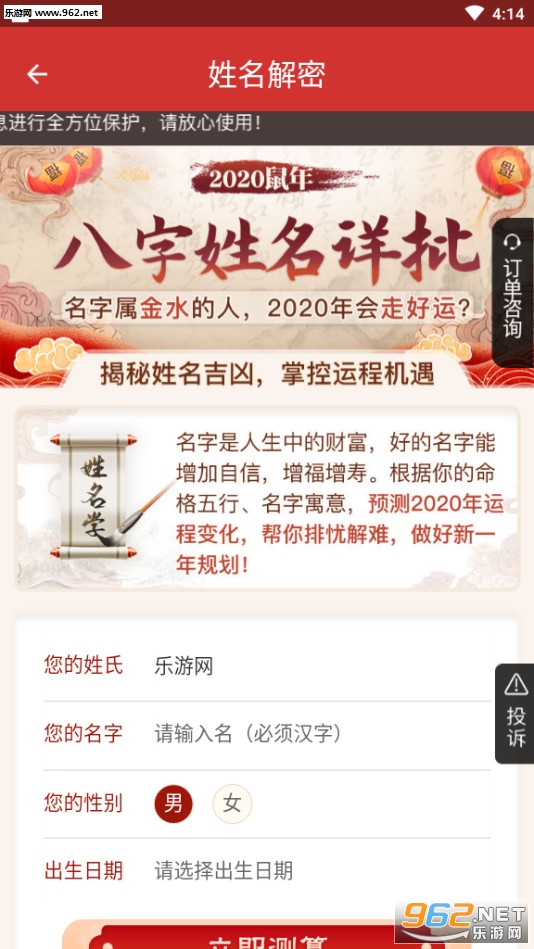 八字测算起名是一款智能起名字算名字软件,在这里拥有专业的八字测算大师,为你解读名字运势,还可以在这里进行新生儿名字的起名,无论是改名取名都可以在这里使用,来下载即可使用哦!