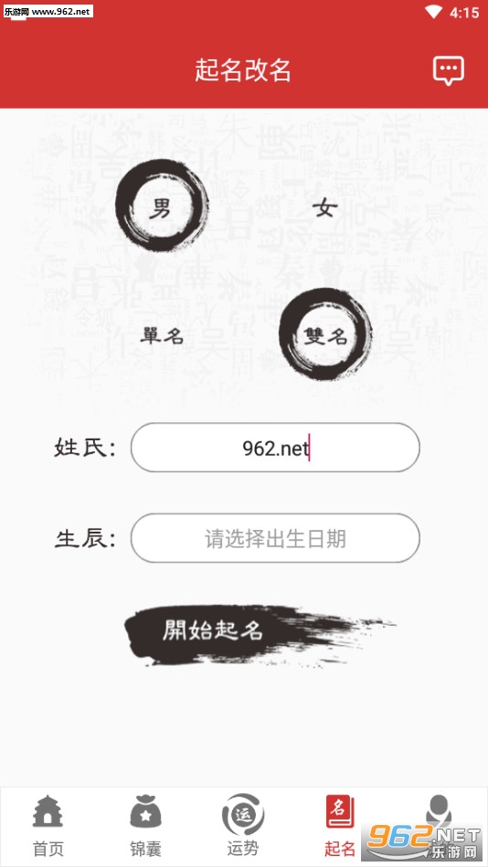《八字测算起名》是一款非常专业快捷的传统起名软件,软件中将通过古代传统起名方式为你提供起名方面的帮助,最后打定主意的还是要靠你自己,一个好的名字影响孩子的一生,软件的操作简单容易上手,推荐给有需要的用户。