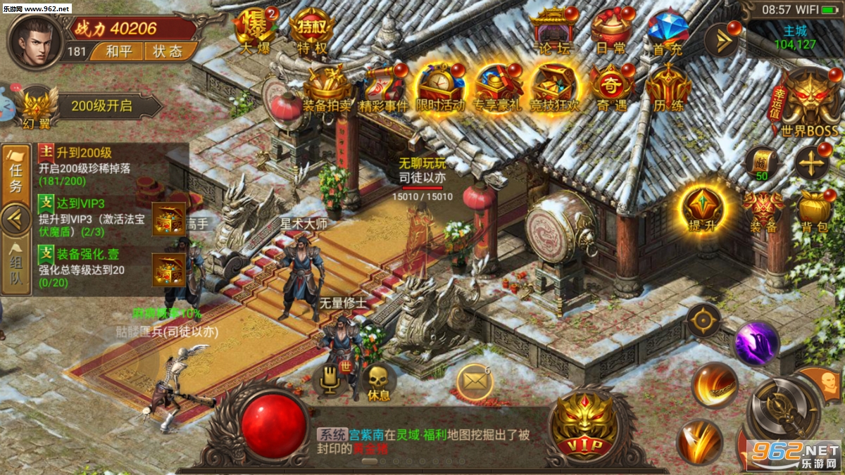 狴犴传奇是一款硬汉热血战斗风格的MMO玛法国战游戏,属于沙巴克的荣耀这次由你来守护,准备好了吗召唤兽道法战三大职业自由选择加入,副职业模式可以召唤另外两大职业进行辅助,道士15狗、剧毒屠龙还有冰封之术全屏秒杀,单人一个服务器刷副本、BOSS ,国战PVP进入同一个频道感受一下万人砍杀的辉煌时刻。