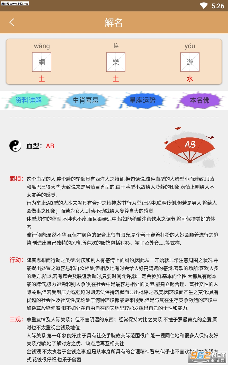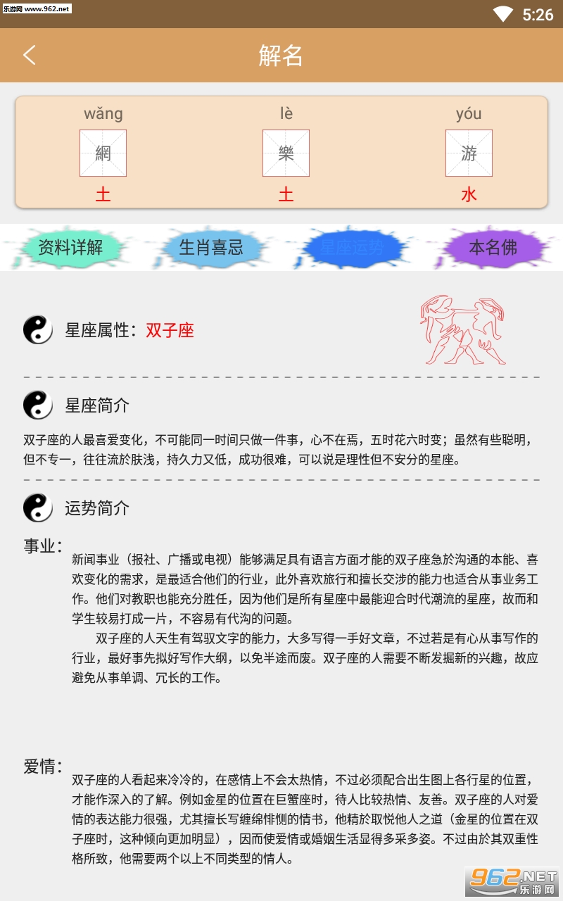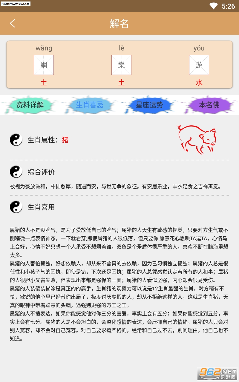 2.[姓名解析]一键查询您的姓名拼音、笔画、五行、吉凶、五格等命理释义参考,通过姓名学原理各方面分析评分。