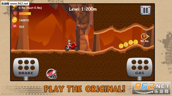 1、小心的控制你的小小的赛车进行闯关,千万要防止翻车的危险哦。