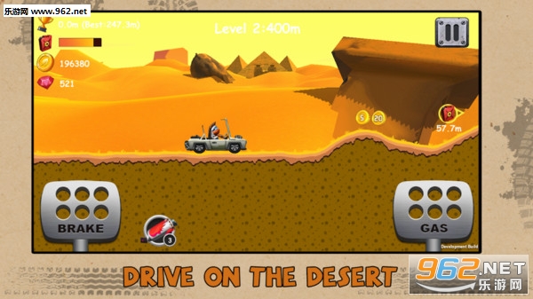 一款3D赛车的游戏,游戏在每个坡道都采用虚拟按键操作,在游戏中玩家需要控制赛车在崎岖不平的赛道上前进,冲刺得太过或者太猛烈的刹车都会导致翻车!同时,非常考验玩家操作技巧。只有玩家的技术到位了,会收获玩家意想不到的惊喜。