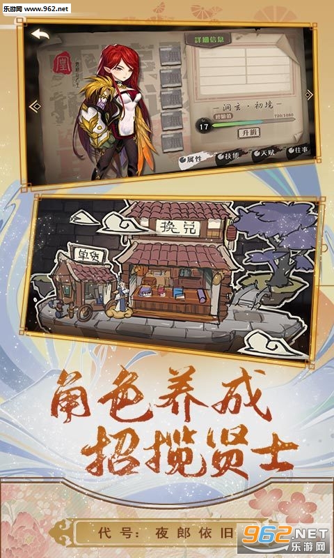 《代号夜郎依旧官方版》是一款日系风格的卡牌手游。游戏采用回合制的玩法模式,日系绘画风格的背景画面,加入丰富的剧情内容。玩家可以从四种势力中选择一种加入,收集各种角色,合理安排阵营,通过战斗快速提升等级属性,通过探索各种不同的副本获得奖励宝箱。超多好玩的模式等你发现,快来下载吧!