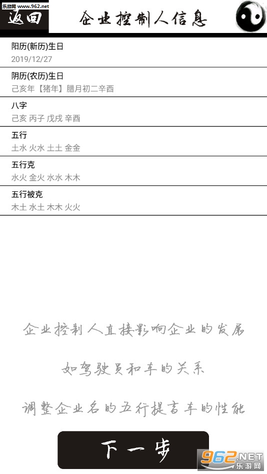 2、企业法人或控制人五行冲克显示