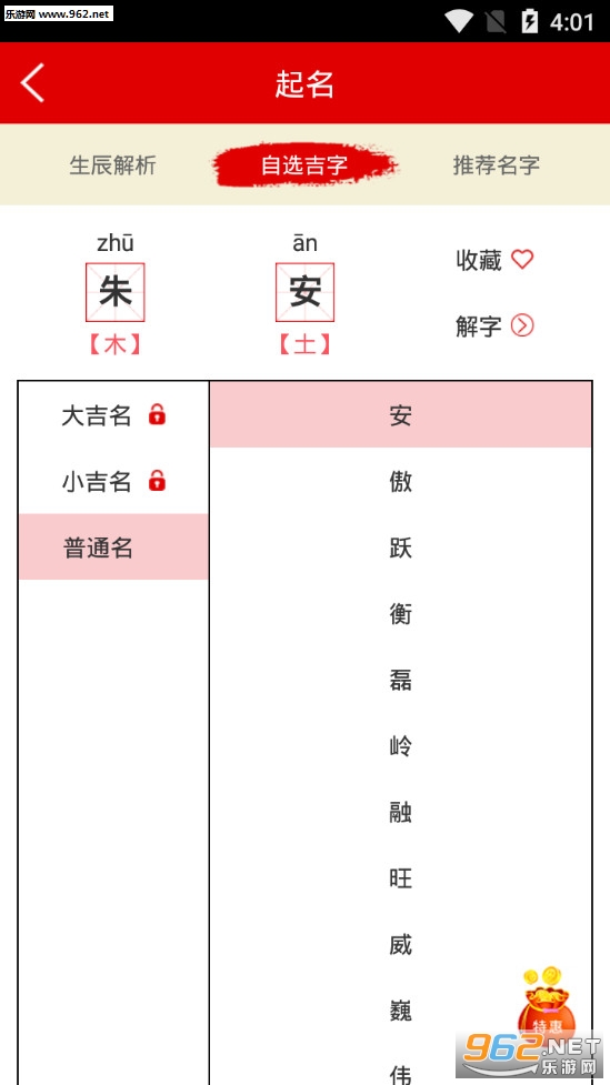 《起名字典取名字典app》是一款以取名起名为核心的软件,不像别的软件有一堆功能,这款软件就是单单以取名测名为核心,用户能够在软件中免费对自己的名字进行测试,还能自己进行选择查看比较吉利的字,或者和大师交流,有需求的话就快来下载吧!