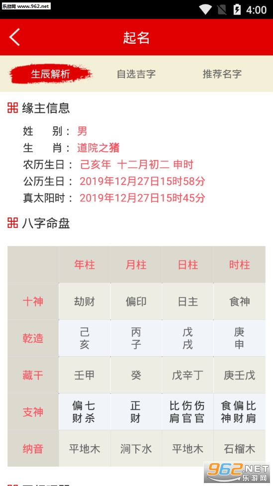 2、推荐名字—根据生辰八字喜用神,经过命理分析相生原理,大师推荐好名字;
