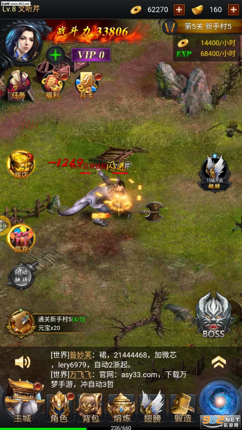 2、强化装备的等级,镶嵌各种属性宝石,大幅度提升人物战力;