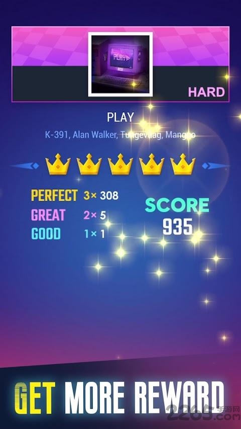 排名列表。每首歌都有一个全球排行榜。挑战最高分并成为前1名。