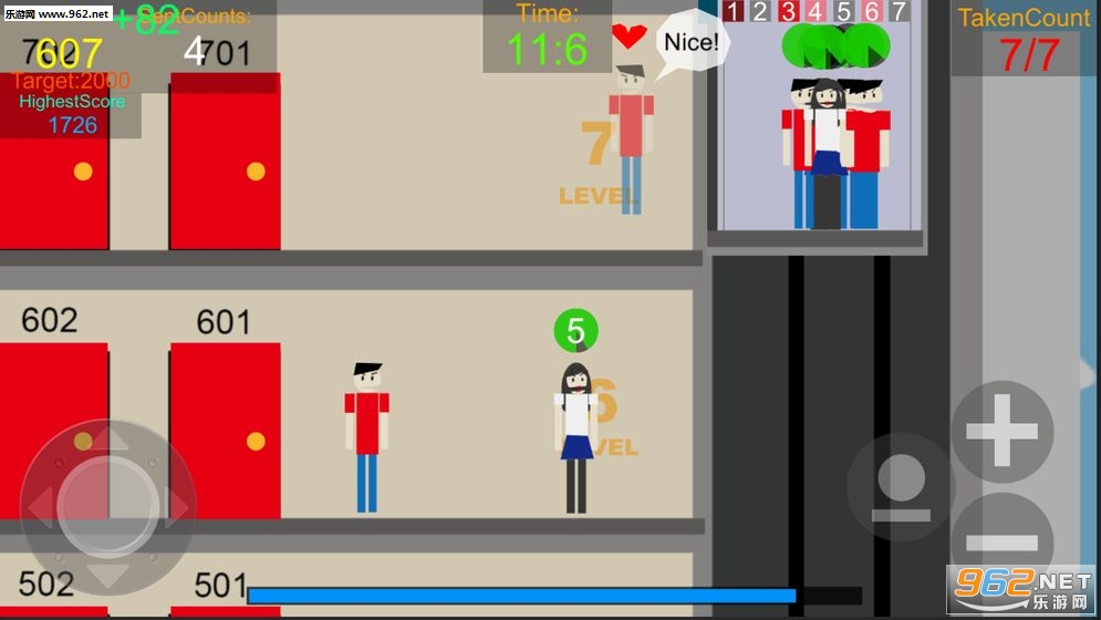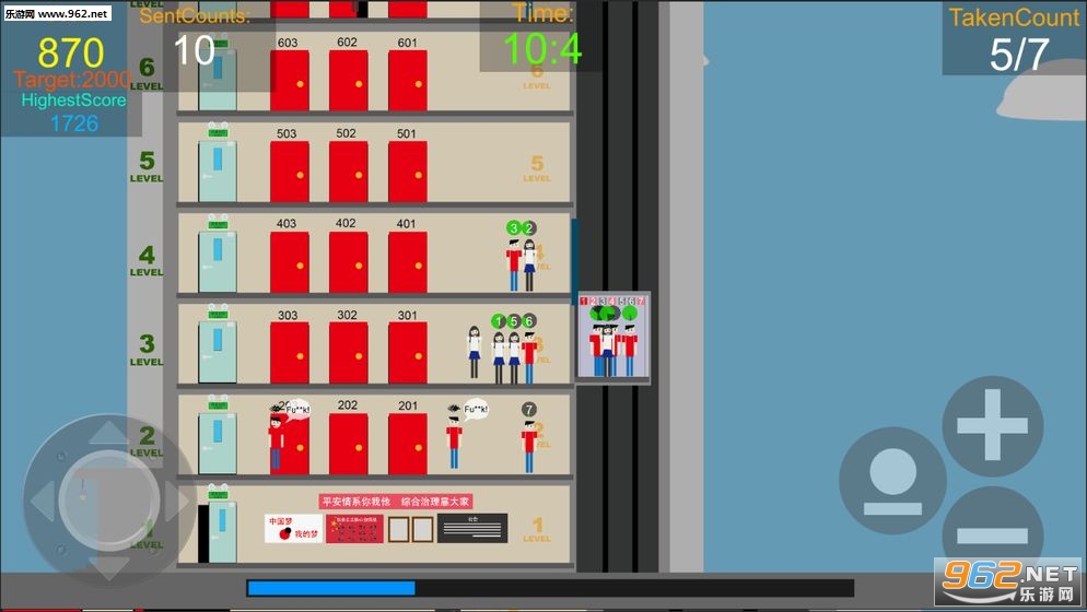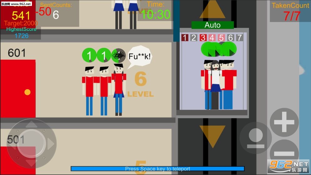 很虎逼的控制模拟一台电梯最优运输在楼层等待的人们,如果不想被乘客谩骂就快点运输他们吧,不然它们堆得会越来越多哦。