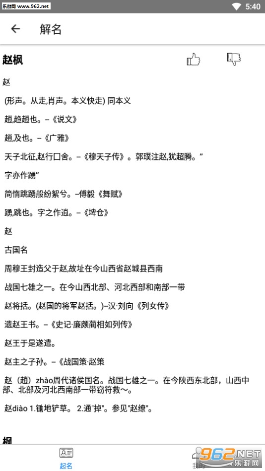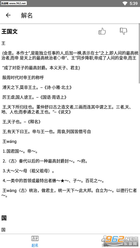 2.解名:一键查询您的姓名拼音、笔画、五行、吉凶、五格等命理释义。