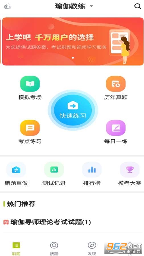 瑜伽题库APP有模拟考场、历年真题练习、快速练习、考点练习、做题记录等多种学习与做题模式、丰富多样化的陪你一起考瑜伽考试。