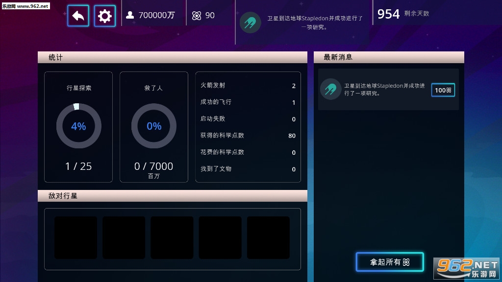 3、准备好了以后你就可以出发把,把人类分批送往目标星球,一共有25个星球可以殖民