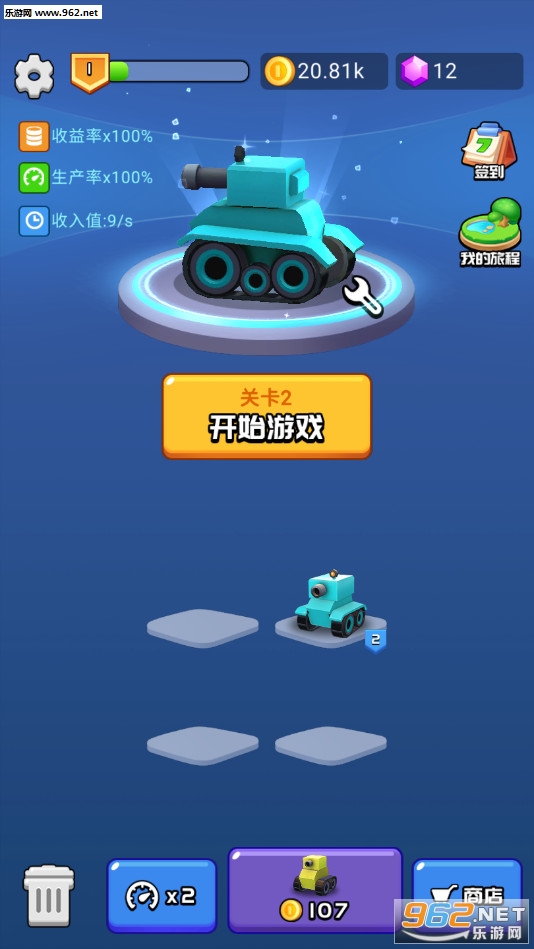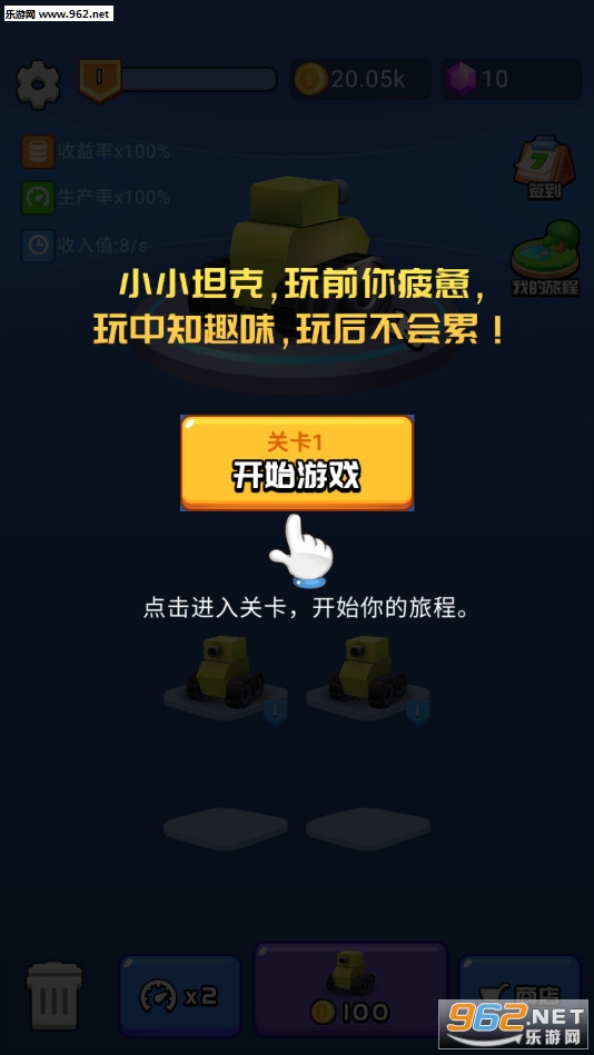 趣味的冒险游戏,想要拥有强力的坦克就需要有着众多的金币去合成更多的坦克,提高收益,然后去挑战一个个关卡,赚取金币,不断的循环。