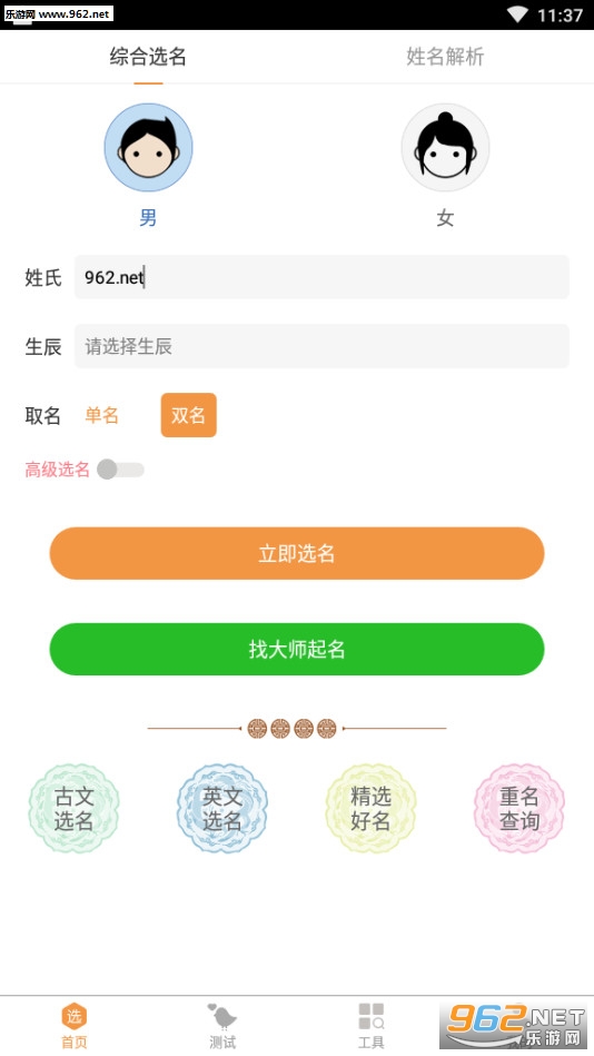 起名通模式:起四字名、双胞胎起名、取英文名、取小名,满足您宝宝取名的多元化需求!