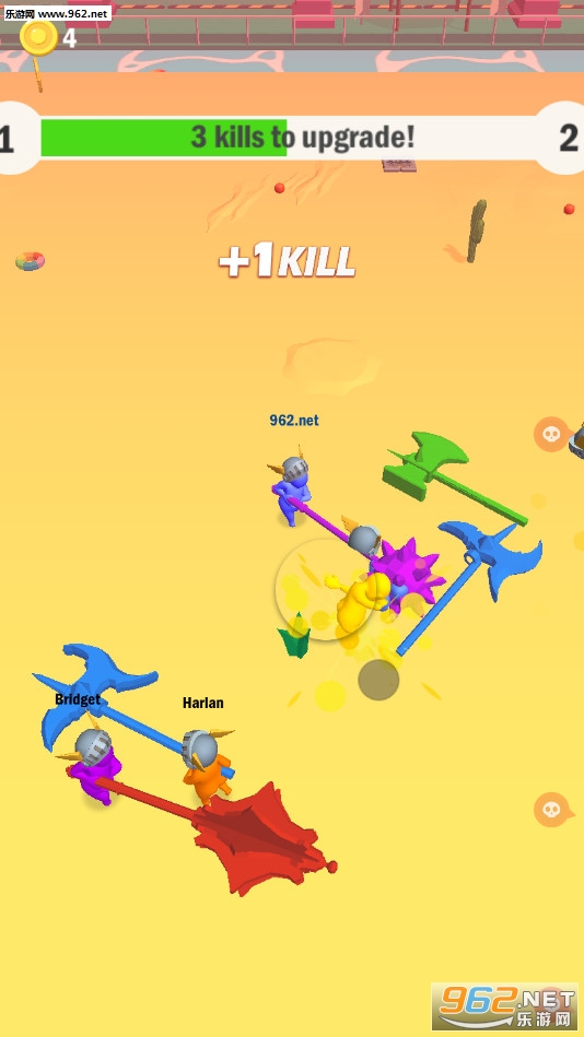 趣味的大乱斗游戏,有着众多的角色和武器可以选择,武器触碰到对手即可击杀敌人,击杀的越多你将变得越大,得分越久越多,喜欢的朋友可以下载试试。