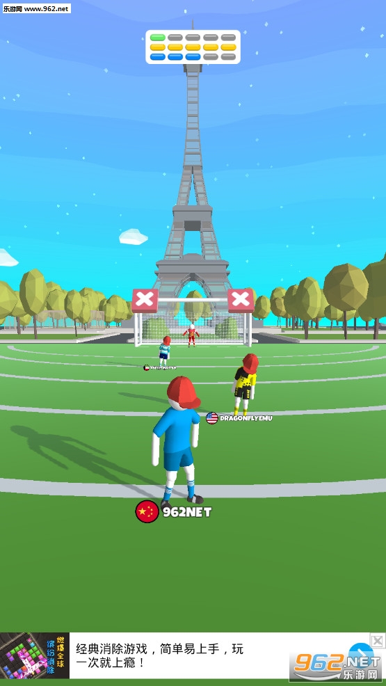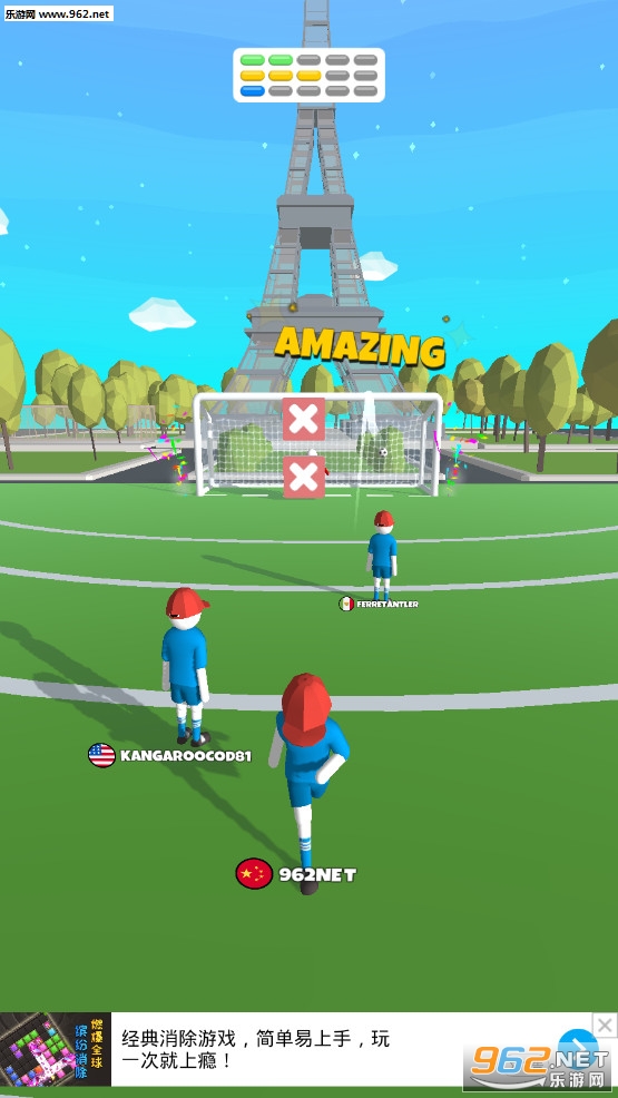 一款非常有趣的竞技冒险游戏,画面简单清新,玩家在游戏中需要和其他两个对手进行比拼,想办法顺利的射门成功,第一个获取胜利就算是闯关成功了。
