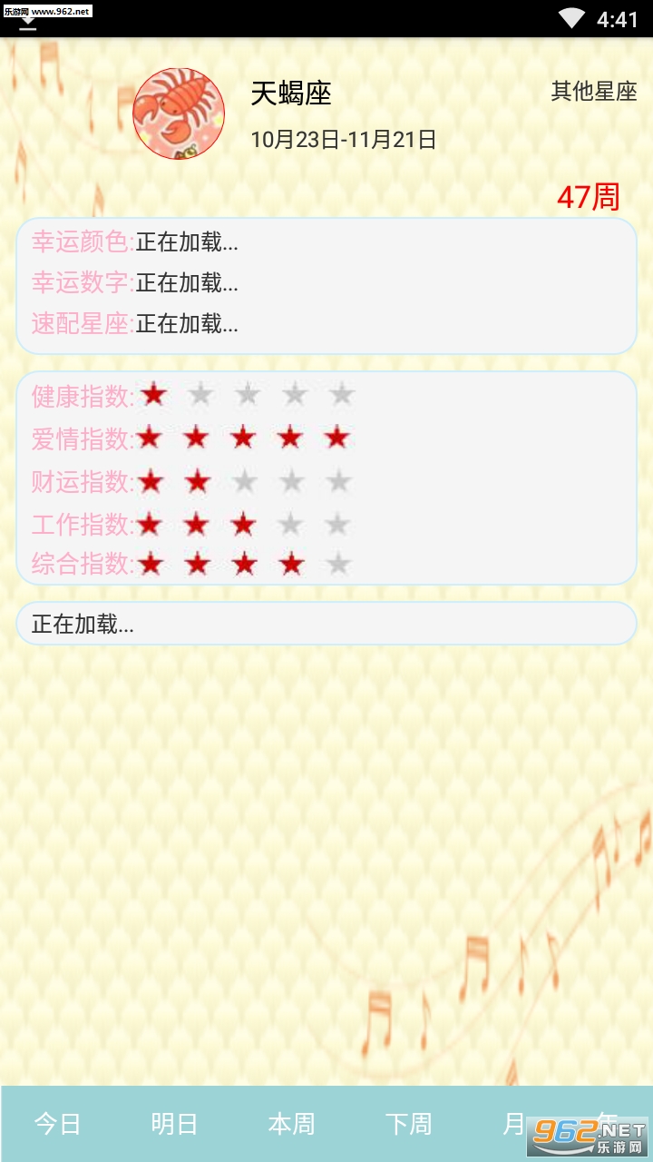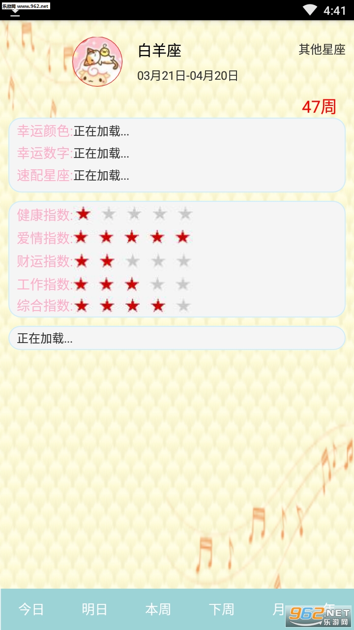 星座萌是一款为您提供每日运势的手机APP,让您及时了解今日的幸运颜色、幸运数字、爱情状况以及财运状况。