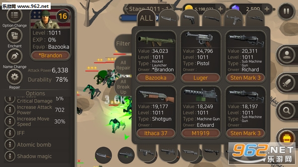2、使用更多相同类型的武器,您的军团将变得更加强大;