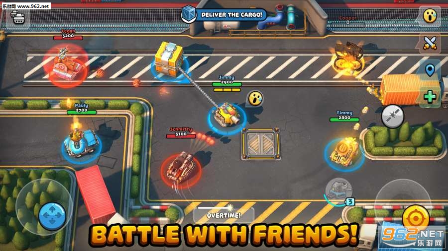 提取货物:团队中一个强大的坦克必须先抓住对手的货物,然后将其拖到您的基地,而其他团队则防守。