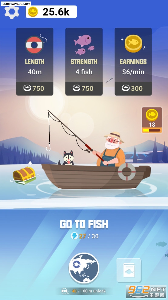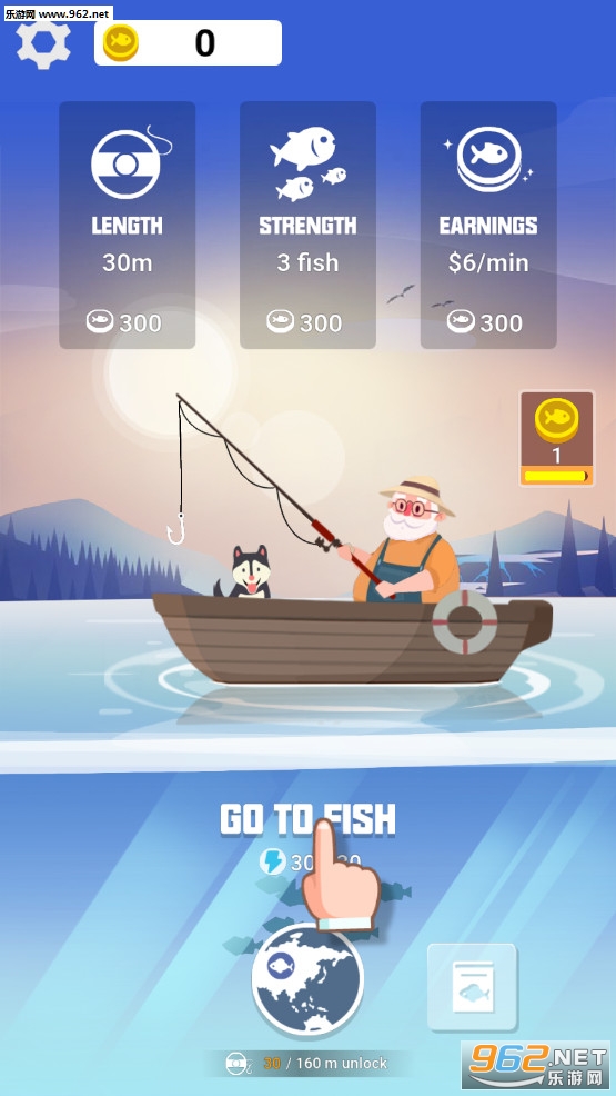 玩家在游戏中能够以第一视角钓鱼,有很多不同的场景供你选择,玩家在游戏中需要不断的升级渔具,完成左上角要求的钓鱼的任务,操作基本上就是点击滑动,玩起来很简单。