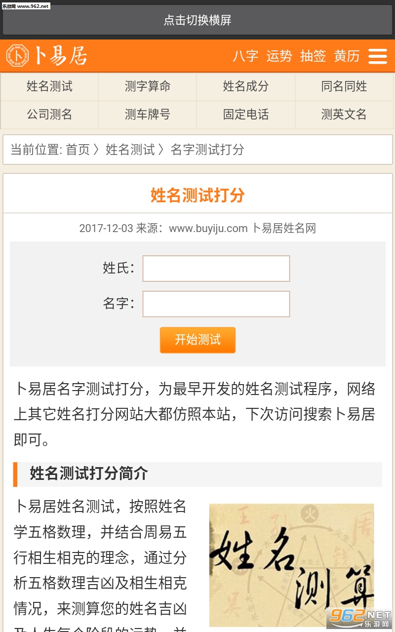完全免费的起名字测试打分软件,软件功能有:姓名测试打分(姓名测算)、五格姓名测试(姓名分析)。是不错的名字打分免费测试APP。