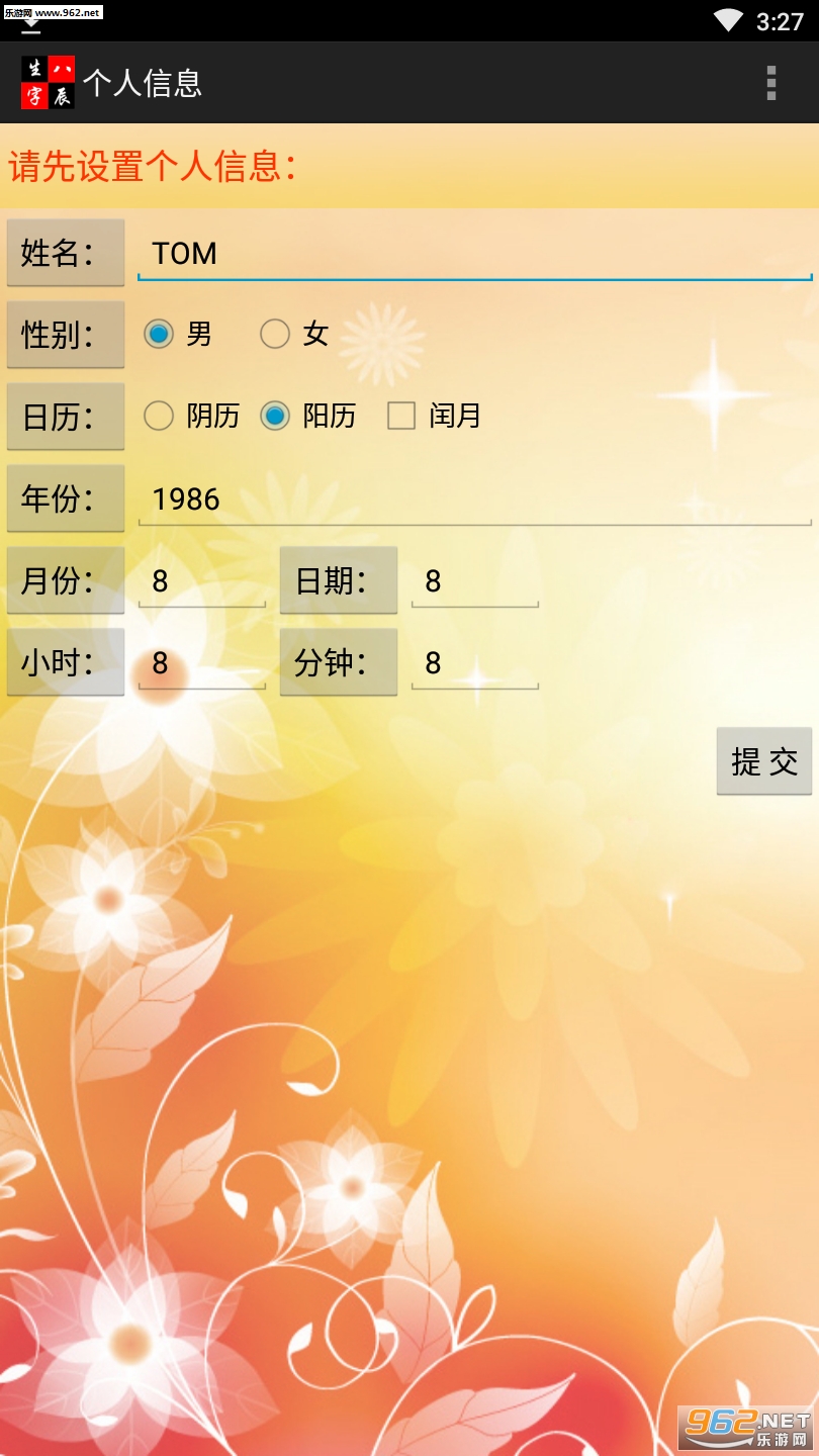 《生辰八字四柱app》是一款非常专业的的生辰八字测算软件,在这款软件中,用户将体验最为便利的算命模式,通过提交姓名,生日等信息来测算出未来会发生的一些事情,简单的操作,感兴趣的老哥欢迎来962下载使用!