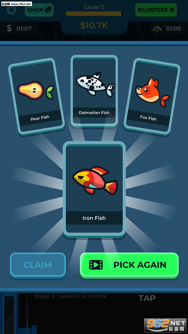 游戏采用简约的画面风格,多种不同的鱼类可以选择;
